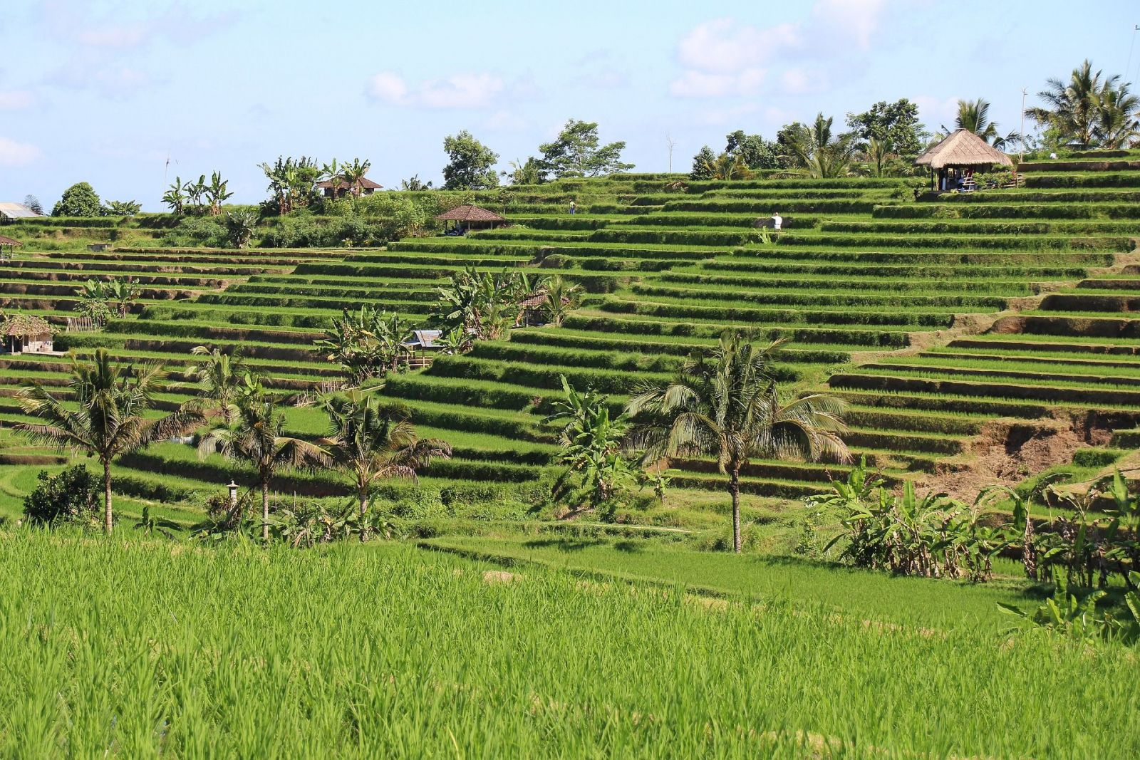 Die Reisterrassen von Jatiluwih sind das Werk der Bauern dieser Region, und um diese imposanten Reisflächen zu erhalten, erheben die Einheimischen seit einiger Zeit an der Peripherie von Angsri eine Eintrittsgebühr für Urlauber, die die Straße passieren möchten. Der Obolus kommt der Gemeinde und dem Schutz der Reisfelder zugute. Von dort kann man aus unmittelbarer Nähe den Reisbauern bei ihrer mühevollen Arbeit mit den Wasserbüffeln zuschauen. Ein seit Jahrhunderten funktionierendes Bewässerungssystem bietet die Grundlage für den Ertrag der Ernte. Fast überall in Jatiluwih reift der Reis zweimal pro Jahr.
