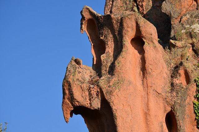 Besonders beeindruckend sind die sogenannten Tafoni. Diese Verwitterungen haben aus dem karmesinroten Granit bizarre gestalten und Formen ausgewaschenen, die sogar Namen haben. Der „Hundekopf“ befindet sich direkt neben der viel befahrenen Straße mit diversen Park- und Aussichtsbuchten.
