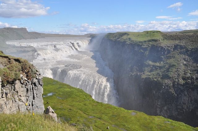 Im Südwesten Islands, im Gullni Hringurinn, dem Goldenen Ring, liegt der seit 1979 unter Naturschutz stehende Wasserfall Gullfoss. Zusammen mit dem Nationalpark Pungvellier, der gleichnamigen mittelalterlichen Volksversammlungsstätte und dem Geysir Strokkur gehört er zu den bekanntesten Sehenswürdigkeiten des Inselstaats. Touristen, die auf ihren Reisen oder Studienreisen die Vulkaninsel besuchen, gelangen über einen Pfad zu der Plattform, die einen eindrucksvollen Ausblick auf den Wasserfall gestattet. Bei Sonnenschein bildet sich ein Regenbogen und in der Abendsonne glänzt die Färbung der Gischt golden. Aufgrund dieser Erscheinung erhielt der Gullfoss Wasserfall den Beinamen „Der goldene Wasserfall“.