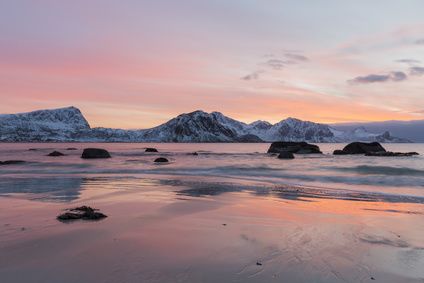 Sonnenuntergang Haukland Beach Lofoten