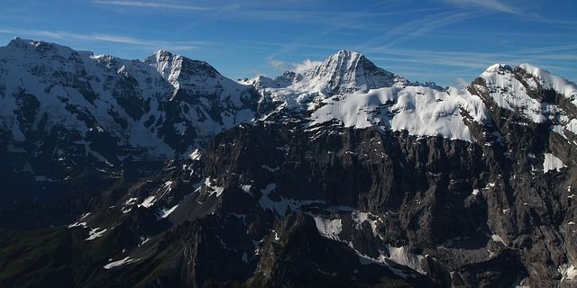Umgeben von mehreren Viertausendern befindet sich das Jungfraujoch auf 3.466 Metern über dem Meeresspiegel als tiefster Punkt zwischen den Bergen Jungfrau und Mönch in den Berner Alpen. Hier liegt auch die Grenze zwischen den Schweizer Kantonen Wallis und Bern. An Tagen mit klarer Sicht hat man hier einen Blick bis zum Schwarzwald und zu den Vogesen. Bei der Fahrt mit der Jungfrau Bahn passiert man auch die sagenumwobene Eiger Wand. Zu Fuß gelangt man von der Endstation bis hin zur Mönchsjochhütte.