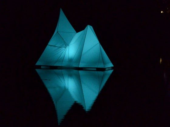 Nach dem Abendessen nehmen wir uns Zeit für einen ausgiebigen Spaziergang zu den einzelnen Kunstwerken der EVI Lichtungen. Hinter dem Namen EVI verbirgt sich der örtliche Energieversorger, der die Lichtkunstbiennale maßgeblich unterstützt.