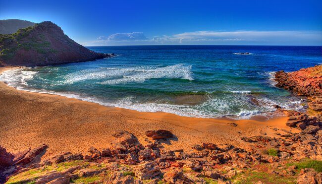 Heute starten wir in der „roten Bucht“,der Cala Pilar und folgen dem Camí de Cavalls, den bekannten Weitwanderweg Menorcas. Wir erreichen ein Tal, welches auf der Insel ob seiner ausgezeichneten Käseproduktion bekannt ist: saftig grün steht hier das Gras in den Wintermonaten. Zum Schluss unserer Wanderung kommen wir an den schönen Strand Algaiarens, wo wir die Möglichkeit für eine Badepause haben.