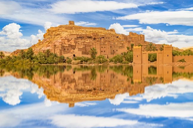 Im Morgengrauen brechen wir zu einer Reise durch kontrastreiche Landschaften auf. Wir überqueren die hell erleuchteten, schneebedeckten Gipfel des Hohen Atlas, bevor wir in das bezaubernde Drâa-Tal hinabfahren, wo sich der normalerweise ausgetrocknete Drâa-Fluss seinen Weg durch die trockene Steinwüste gebahnt hat. Spärliche Vegetation, widerstandsfähige Akazien und Tamarisken prägen das Bild und trotzen den rauen Elementen.