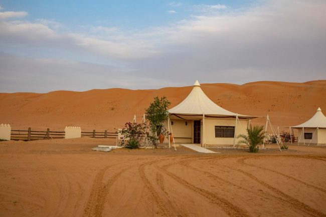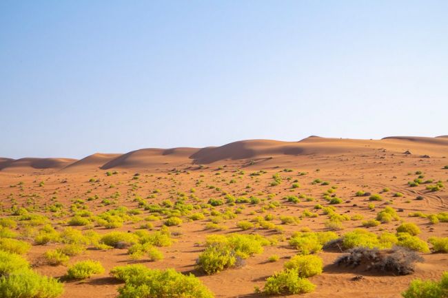 Was wäre ein Besuch im Oman ohne einen Abstecher in die Wüste? Auf gut ausgebauten Straßen fahren wir mit landestypischen Geländewagen ins Landesinnere. Hier erleben wir die geologisch so einzigartigen Naturlandschaften Omans. Zunächst wird es grün: Das üppig bewachsene und stets Wasser führende Wadi Bani Khalid empfängt uns mit Stegen, Brücken und schattigen Plätzen. In dem einzigartig klaren Wasser lässt es sich wunderbar schwimmen. Vielleicht möchten Sie es den Omani gleichtun? Im scharfen Kontrast hierzu lassen wir uns von den vielfältigen Dünenformationen der Wüste Wahiba Sands beeindrucken und schauen bei einer Beduinenfamilie vorbei, die uns gerne ihr Zuhause zeigt und uns ihre Lebensweise schildert. Wir nehmen die Eindrücke von Wadi und Wüste mit zurück nach Muscat. 450 km (F, A)