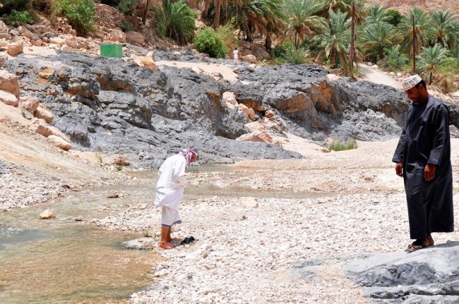 Heute fragen wir uns, wie das Leben im Oman im Einklang mit der Natur funktioniert. Welche Strategie haben die Menschen in einer auf den ersten Blick häufig lebensfeindlichen Umwelt entwickelt? Im üppig bewachsenen Wadi Bani Khalid, das stets Wasser führt, finden wir badende Omani und erste Antworten. In der Wüste Wahiba Sands erleben wir eine ganz andere Seite: Beduinen laden uns ein und erzählen uns von ihrem Leben. Am Abend, in unserem Camp mitten in der Wüste, genießen wir die unendliche Stille. 260 km. (F, A)