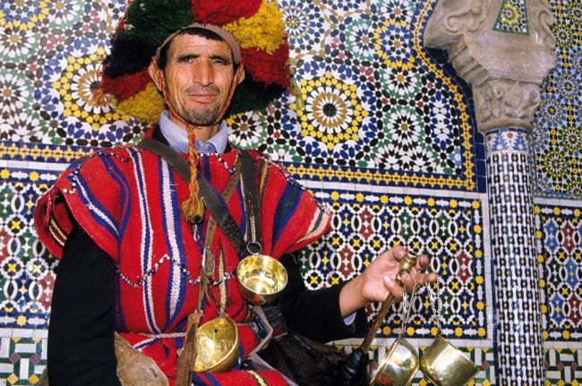 Wir schauen uns um in der ältesten und schönsten Medina Nordafrikas und fühlen uns in den Orient des Mittelalters zurückversetzt. Beim Spaziergang durch die verwinkelte Altstadt hören, riechen und sehen wir die Viertel der Gerber, Kupferschmiede, Färber, Tischler und Gewürzhändler. Wir passieren die wunderschöne Kairaouine-Moschee, eine Kombination aus Moschee und islamischer Hochschule, und das Grabmal des Moulay Idriss II.. Als Nichtmuslime können wir beide Monumente nur von außen betrachten und nehmen die Attarine-Medersa in Augenschein, eine wunderbar prächtige Koranschule, deren Studenten jedoch asketisch einfach wohnten. (F, A)