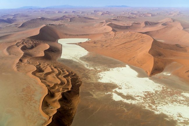 Schon vor Sonnenaufgang klingelt der Wecker. Wir fahren zu den roten Dünen am Sossusvlei. Das letzte tiefsandige Stück ins Vlei legen wir mit wüstentauglichen Fahrzeugen zurück. Von hier können wir das beeindruckende Farbspiel von Sonne und Schatten auf den höchsten Sanddünen der Welt bewundern. Wer wagt den Aufstieg? Von oben haben wir eine fantastische Aussicht über das Dünenmeer. Auch ein Abstecher ins Dead Vlei. Die versteinerten Kameldornbäume auf ausgetrocknetem Lehmboden bilden eine surreale Kulisse inmitten der Dünenlandschaft. Anschließend erkunden wir den Sesriem-Canyon, eine 30 Meter tiefe und einen Kilometer lange Kalksteinschlucht. 300 km (F, A)