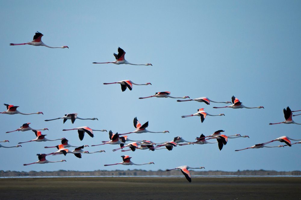 Unsere Reise führt durch die schier endlose Weite der Namib. Walvis Bay, die Walfischbucht zwischen Wüste und Meer, ist unser erstes Ziel am Atlantik. In der Lagune können wir mit etwas Glück bis zu 30 verschiedene Vogelarten ausmachen, darunter Flamingos und Pelikane. Unser nächster Halt ist die surreal anmutende Mondlandschaft, die vor Millionen Jahren entstanden ist. Dann sehen wir uns Swakopmund genauer an: Heute ein beliebter Ferienort an der Küste, war er in den 1890er Jahren der wichtigste Versorgungshafen von Deutsch-Südwest. 350 km (F)