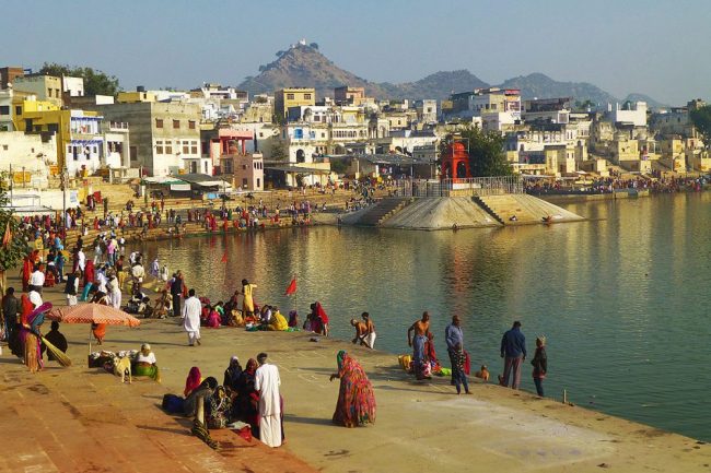 Heute starten wir den Tag mit einer frühen Zugfahrt von Delhi nach Ajmer. Wir lehnen uns zurück und beobachten während der rund 7-stündigen Fahrt das Treiben im Zug. In Ajmer angekommen, wartet bereits der Bus auf uns, um uns in die heilige Stadt Pushkar zu bringen, idyllisch an einem See inmitten der Wüste Thar gelegen. Dieser Pilgerort nimmt in der Hierarchie der Hindus einen sehr hohen Rang ein. Besonders zum Pushkarfest sind hier tausende von Pilgern anzutreffen. Am Nachmittag besuchen wir den Brahma-Tempel, der als einziger seiner Art gilt und schlendern um den Pushkar-See.15 km (F)