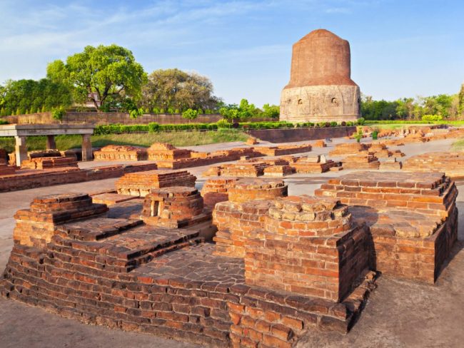 - Ausflug nach Sarnath, wo Buddha seine erste Predigt hielt und die Dhamek Stupa den Standort eines einst prächtigen Klosters markiert.