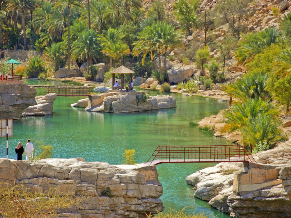 - Erster Stopp am idyllischen Wadi Tiwi, bekannt für seine üppigen Obstplantagen und traumhaften Aussichten.