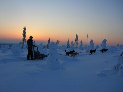 Nach dem Frühstück Bus-Transfer zur Huskyfarm, wo Sie die freundlichen Hunde kennenlernen. Ihr Guide zeigt Ihnen wie man einen Hundeschlitten fährt und dann geht die rasante Tour los, auf der Sie abwechselnd den Hundeschlitten selber lenken oder im Schlitten sitzen. Sie fahren vorbei an schneebedeckten Bäumen, über gefrorene Seen und Sümpfe und können mitten in der verschneiten Landschaft Fotos von sich mit Ihrem Schlittenteam machen. Rücktransfer, Abendessen und Übernachtung.
