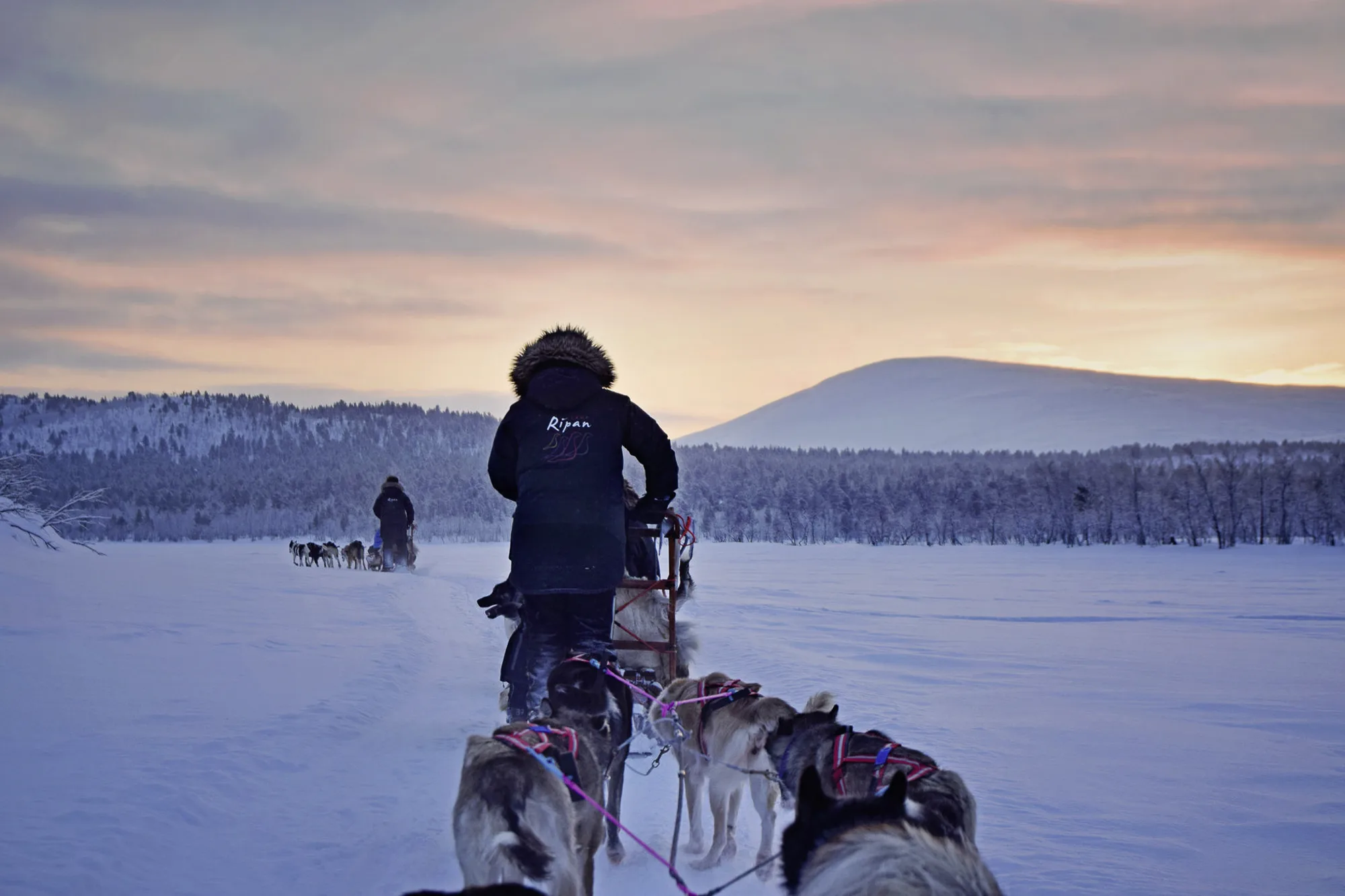 Eine Nordlicht Tour darf in einem Winterurlaub in Lappland nicht fehlen – ein besonderes Erlebnis ist eine Huskysafari am Abend. Genießen Sie die Fahrt durch die Wälder, entlang der Flüsse, während Sie von Hunden auf einem Schlitten gezogen werden. Heiße Getränke und hausgemachter Apfelkuchen werden zur Stärkung am Lagerfeuer gereicht. Fernab der Stadtlichter stehen die Chancen für eine Nordlichtsichtung besonders gut (optional zubuchbar).