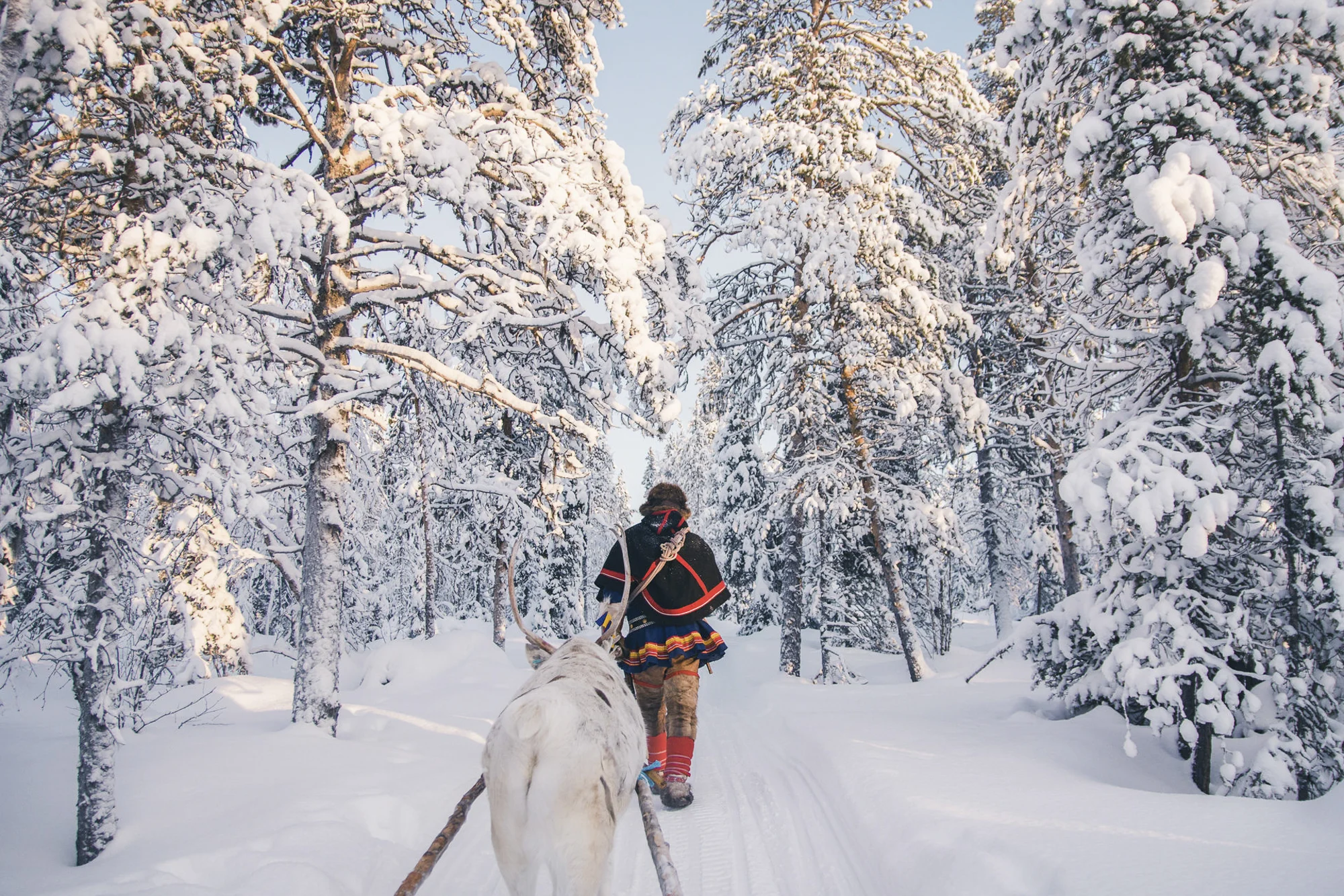Lassen Sie ihre Erlebniswoche mit einem entspannten Ausflug ausklingen. Sie sind eingeladen ein Teil des samischen Volkes zu werden und deren ursprüngliche Lebensweise mit den Rentieren kennen zu lernen. In einem Schlitten, der hinter einem Motorschlitten gespannt ist, fahren Sie durch den Wald zum Rentiergehege Sautosjohka. Helfen Sie beim Trainieren und Füttern der wunderbaren Tiere. Nach einer kurzen Schlittenfahrt werden Snacks und Heißgetränke im samischen Zelt (lávvu) gereicht (optional buchbar).