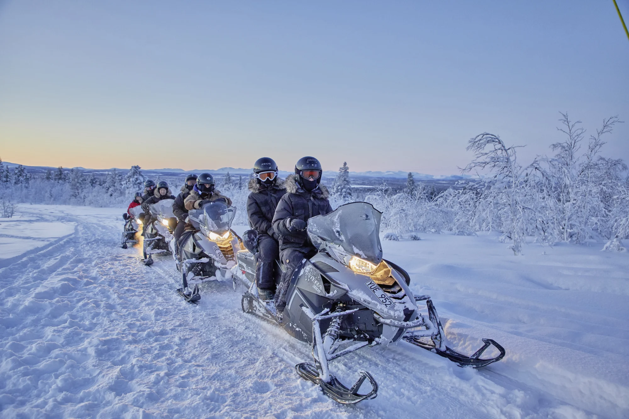 In Nordschweden ist der Motorschlitten das häufigste Transportmittel. Die Motorschlittensafari führt in die nahe gelegenen Mittelgebirgsregionen, über zugefrorene Seen und in die wilde Waldlandschaft. Genießen Sie während einer Pause die typisch schwedische Fika. Im Anschluss begeben Sie sich auf die Suche nach Elchen in Europas letzter Wildnis (optional zubuchbar).