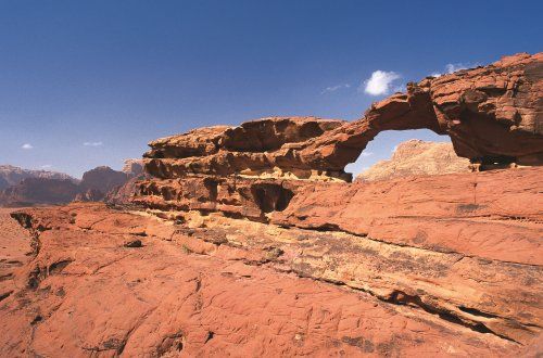 Heute besichtigen Sie ausgiebig Petra, die "rosarote Stadt". Sie wurde von Nabatäern um die Zeitenwende im Schutz der Berge erbaut. Aus dem verkarsteten Kalkboden entspringt die Quelle Ain Musa, die Mosesquelle, die am Rande der Wüste günstige Bedingungen für Rast- und Wohnplätze schuf. Durch die Quelle und die Abgeschlossenheit des Tales nahm Petra jahrhundertelang eine wichtige Stellung im Vorderen Orient ein. Sie gehen durch die Felsspalte des Sik, den engen und verwinkelten Eingang, der sich zwischen hohen Felswänden windet und über Jahrhunderte alle feindlichen Angriffe abwehrte. Der erste Blick fällt auf die riesige aus rosa Sandstein herausgearbeitete und reich geschmückte Fassade des sogenannten Schatzhauses, des berühmtesten und besterhaltenen aller Denkmäler in Petra. Sie besuchen einige Felsengräber, wie das Palast-, das Soldaten- oder das Urnengrab, welches in römischer Zeit das Gerichtsgebäude und in byzantinischer Zeit der Bischofssitz war. Außerdem sehen Sie das römische Theater. Der Aufstieg zum Opferplatz belohnt Sie mit einem herrlichen Blick über das ganze Tal. Am Abend geht die Fahrt ins Wadi Rum, dem Wüsten-Tal der Beduinen. Hier erwartet Sie das Camp mit einem von den Beduinen traditionell im Erdofen zubereiteten Barbecue-Abendessen. Anschließend genießen Sie am Lagerfeuer den wundervollen Sternenhimmel.