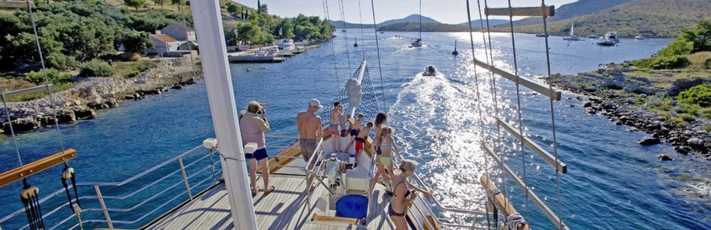 An Bord unseres gemütlichen Motorseglers stellt sich sofort eine entspannte Atmosphäre ein; der Urlaub beginnt für uns ab der ersten Sekunde. Die Crew sorgt dafür, dass wir uns rundum wohlfühlen, während wir in die kristallklaren Gewässer der Adria eintauchen. Wir setzen Kurs Richtung Süden und besuchen dabei unter anderem den schönsten Strand Kroatiens auf der Insel Brač. Dort haben wir reichlich Zeit, im türkisfarbenen Wasser zu schwimmen und die Sonne zu genießen.