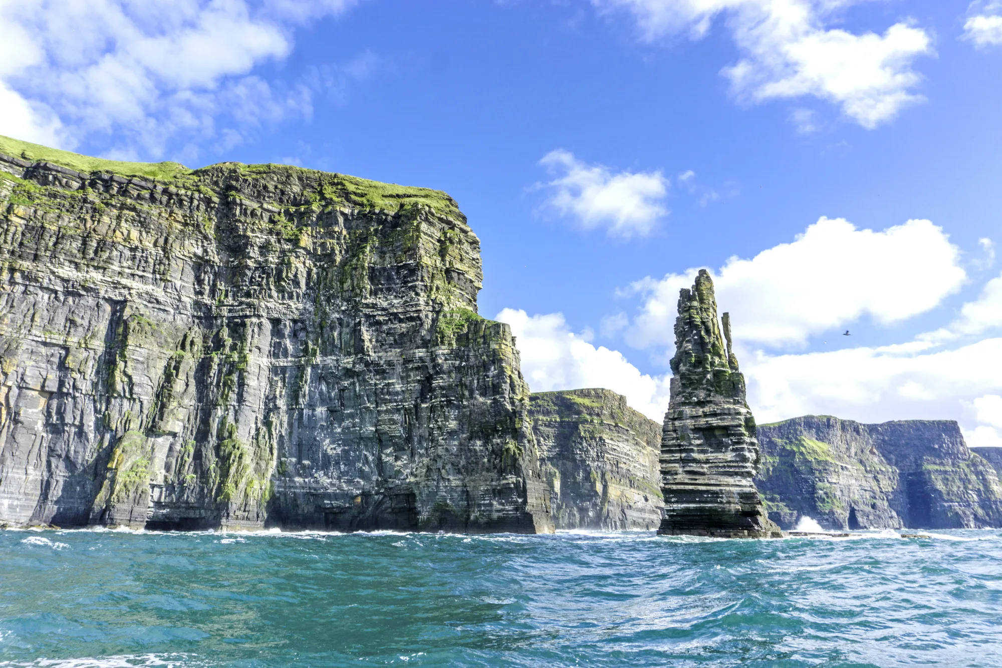 Durch die steinige Mondlandschaft der Burrenregion und entlang der Black Head Küstenstraße, wo die einzigartige Landschaft besonders gut sichtbar ist, gelangen Sie nach Doolin. Während einer Bootstour können Sie die majestätischen und spektakulären Cliffs of Moher bewundern. Sollte die Bootsfahrt entlang der Cliffs of Moher aufgrund schlechter Wetterverhältnisse nicht stattfinden können, erkunden Sie diese von der Landseite aus. Per Fähre geht es über den Fluss Shannon in die Grafschaft Kerry.