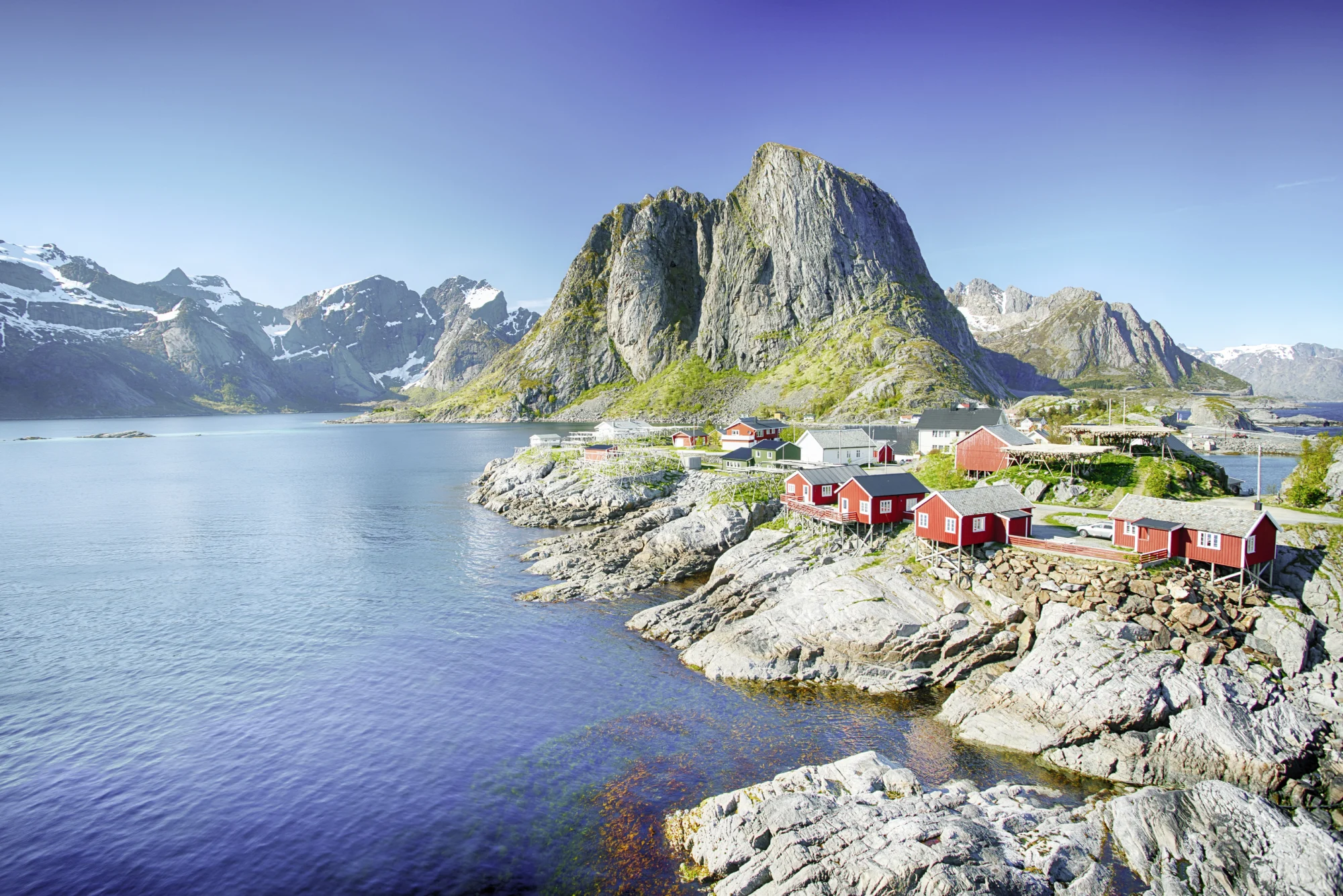Eine ca. 3-stündige Fährüberfahrt führt Sie von Bodø über den Vestfjord auf die Lofoten. Sie befinden sich jenseits des Polarkreises, etwa in gleicher Höhe wie das nördliche Alaska und Mittelgrönland. Dennoch ist das Klima für diese hohen Breitengrade sehr mild, denn der Golfstrom sorgt dafür, dass die Gewässer auch im Winter eisfrei bleiben. Der Blick vom Wasser auf die mächtige, ca. 110 km lange Lofotenwand ist beeindruckend. Von Moskenes geht es über die verwunschen wirkenden Inseln mit schroffen Felsen und lauschigen Fischerdörfern.