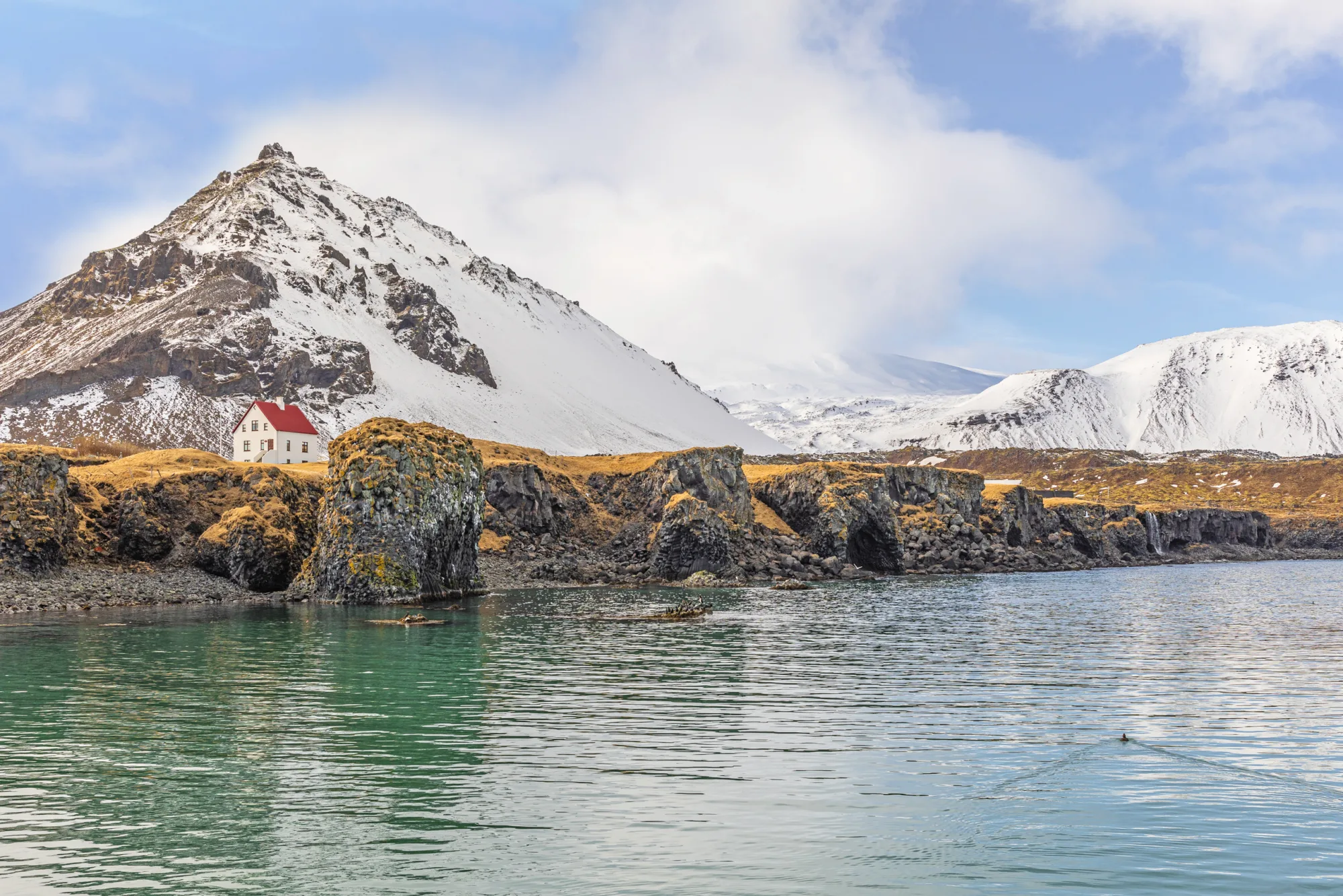 Die Halbinsel Snæfellsnes wird nicht umsonst „Island en miniature“ genannt. Die Region auf der Halbinsel ist geprägt durch eine erstaunliche Vielfalt an Landschaften und Naturphänomenen. Das erloschene Vulkangebiet und gleichzeitig ein Nationalpark, welche von einer mächtigen Eiskappe am Snæfellsjökull überragt ist, war für den berühmten Schriftsteller Jules Verne der „Eingang zum Mittelpunkt der Erde“. Ein weiteres unbestrittene Highlight ist der Kirchberg Kirkjufell, der mit dem Kirkjufellsfoss im Vordergrund ein beliebtes Fotomotiv hergibt. Dieser befindet sich in der Nähe des Fischerdorfes Grundarfjördur. An der Südküste Snæfellsnes finden Sie im erloschenen Vulkangebiet eine Vielfalt an Naturphänomenen die kaum zu vergleichen ist. Dazu gehören gletscherbedeckte Vulkankegel, Hochmoorgebiete, Kraterringe, Lavafelder, Meereshöhlen und die sechseckigen Basaltsäulen bei Arnarstapi. Weiterhin können Sie Raudamelsölkelda besuchen. Sie ist eine der größten Mineralquellen Islands.