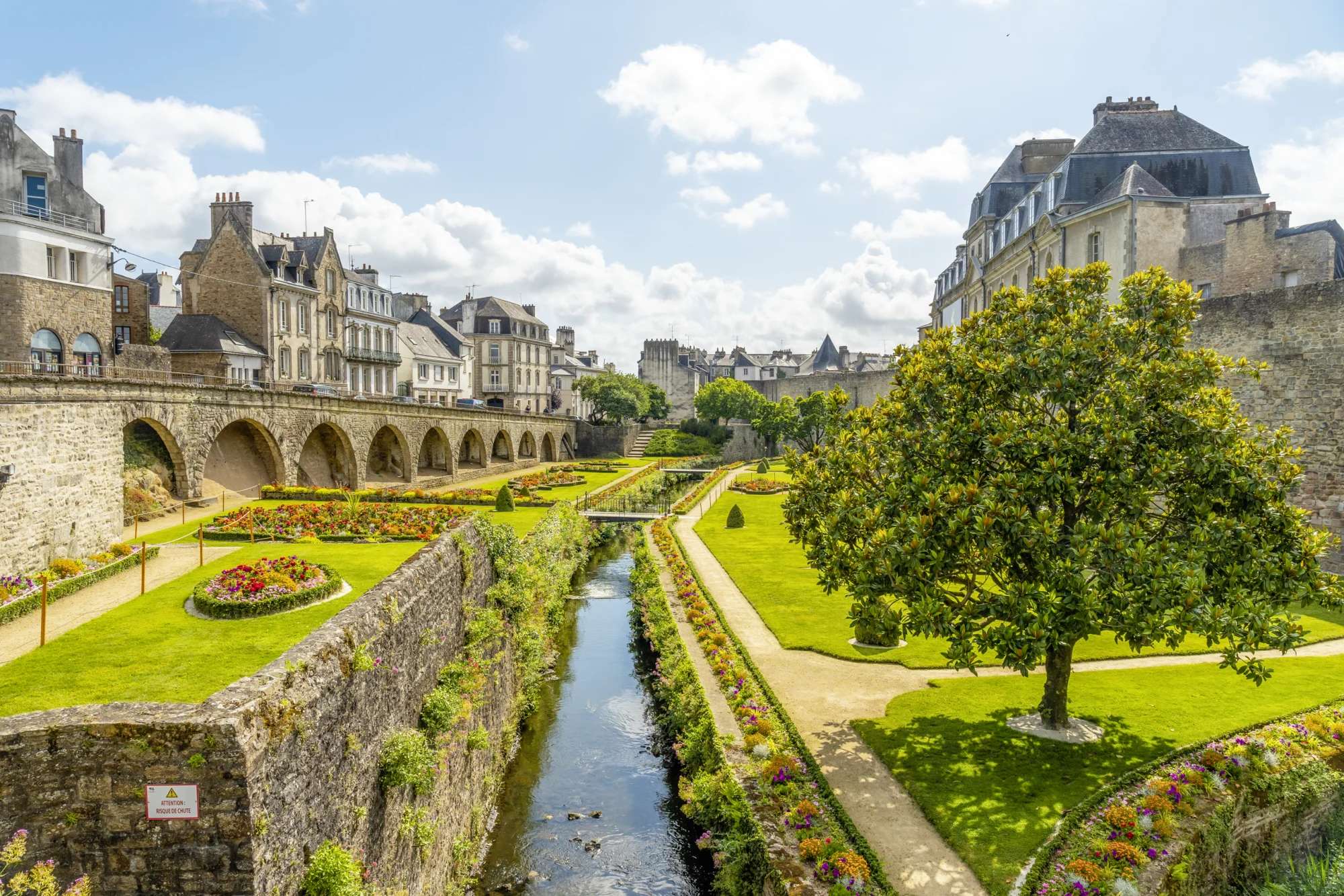 Eine Vielzahl von größeren und kleineren Inseln verteilt sich im Golf von Morbihan – nur durch einen schmalen Wasserweg mit dem Atlantik verbunden, lockt er mit seiner landschaftlichen Schönheit. In Vannes lohnt ein Bummel durch die hübsche Altstadt und entlang der mittelalterlichen Stadtmauer.