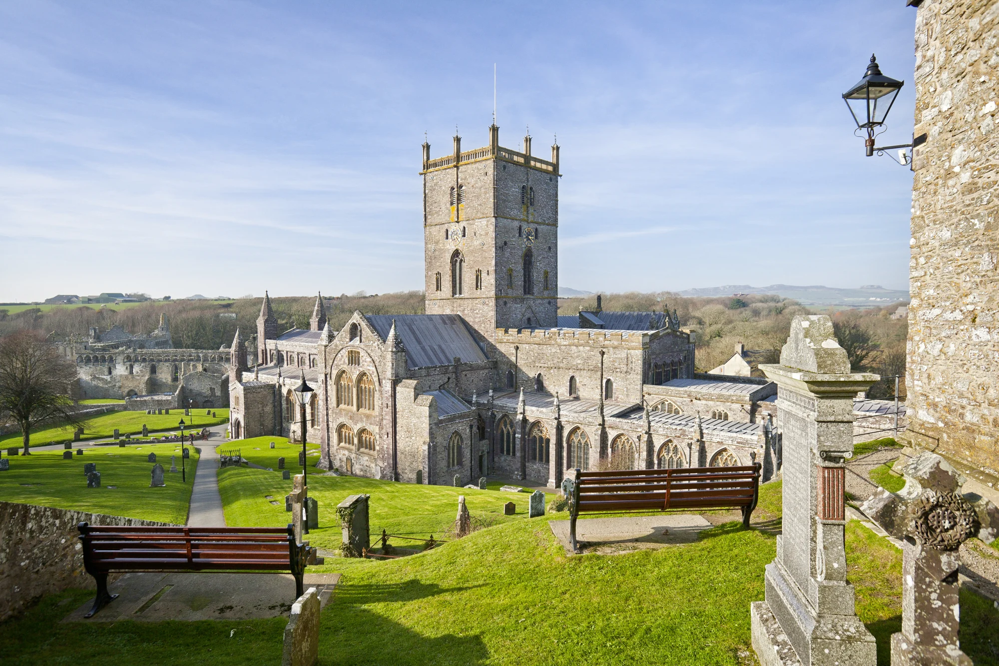 Am westlichsten Punkt von Wales liegt der Pilgerort St Davids. Sie besuchen die Kathedrale mit ihrer beeindruckenden Holzdecke sowie die Ruinen des Bischofspalastes. Empfehlenswert ist auch ein Besuch von Ramsey Island (Überfahrt nicht inkl.). Die Insel ist ein Naturschutzgebiet mit seltener Flora und Fauna. In der umliegenden See können Wale und Delfine gesichtet werden.