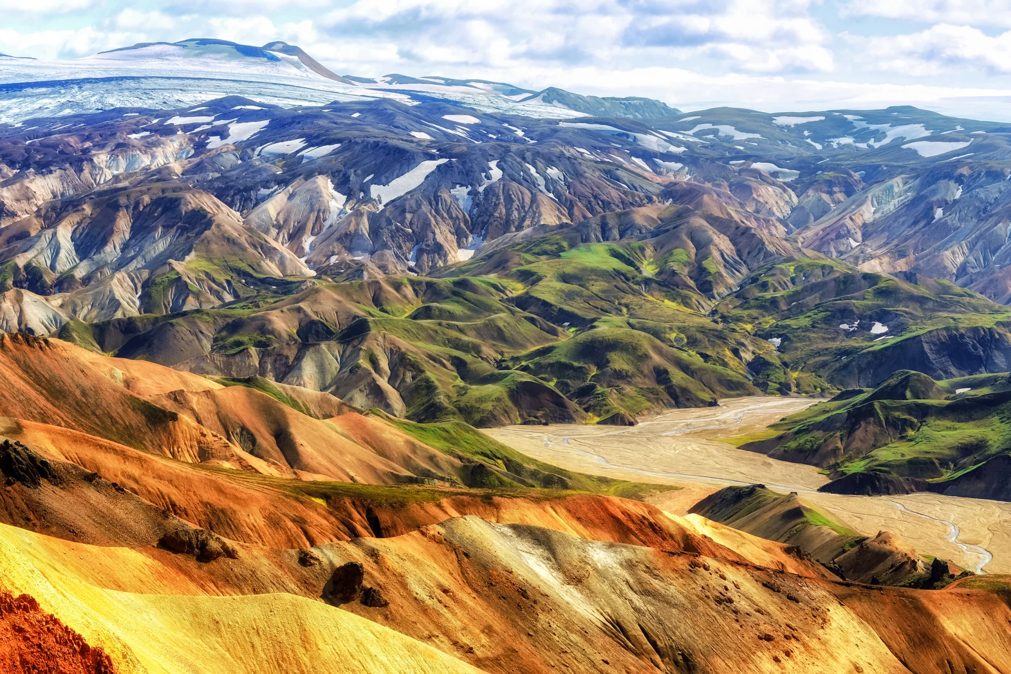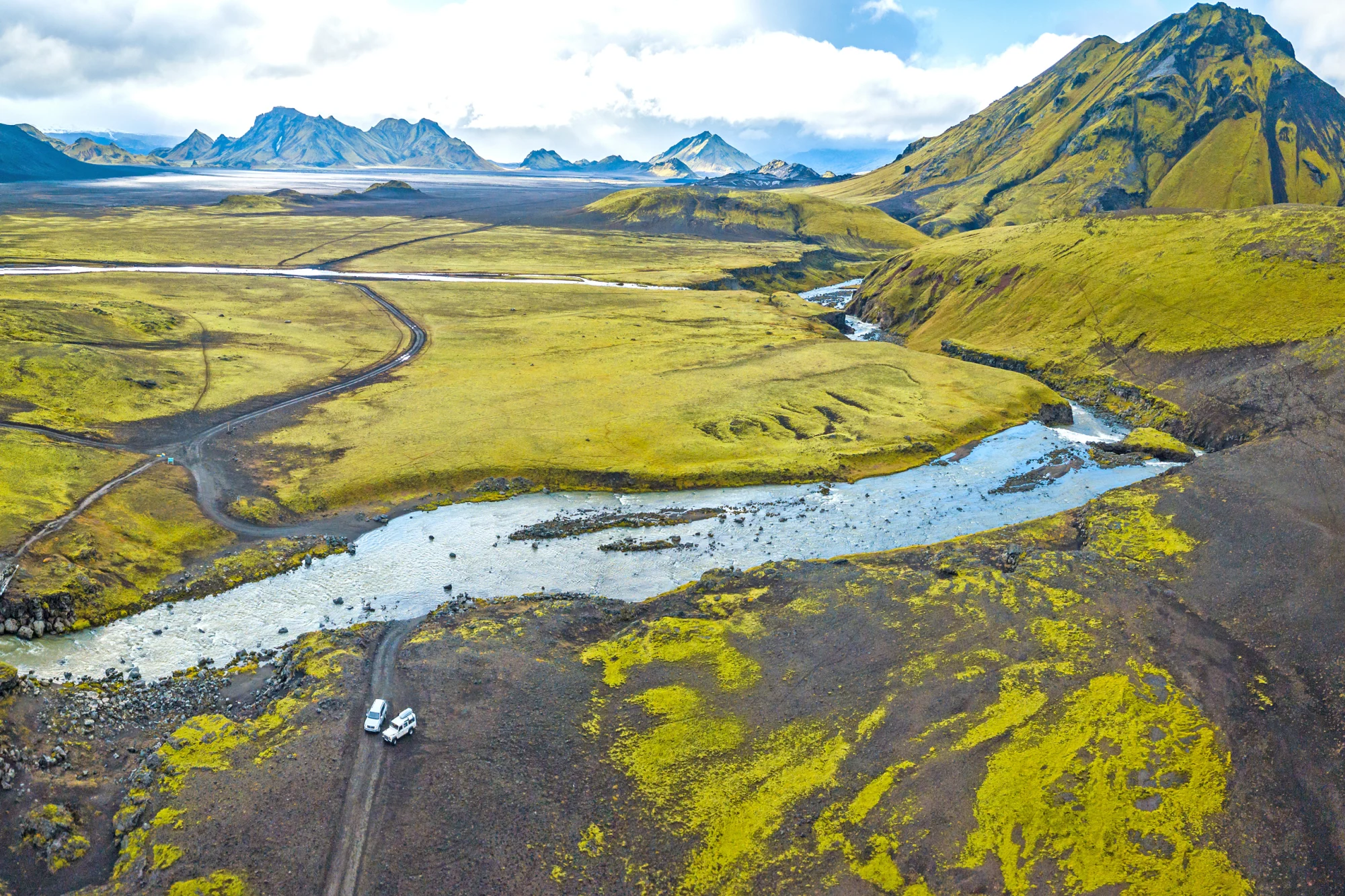 Bei Kirkjubæjarklaustur verlassen Sie die Ringstraße und fahren ins Hochland. Über Schotterpisten und mit kleinen Flussdurchquerungen erreichen Sie die Feuerschlucht Eldgja und das Liparitgebirge Landmannalaugar. Das unter Naturschutz stehende Gebiet besticht vor allem durch sein einzigartiges farbenprächtiges Gestein. Wer möchte, kann in den Heißen Quellen am Fuße des Berges baden. Entlang der Ausläufer des Vulkans Hekla erreichen Sie das beeindruckende Thjorsa-Tal.