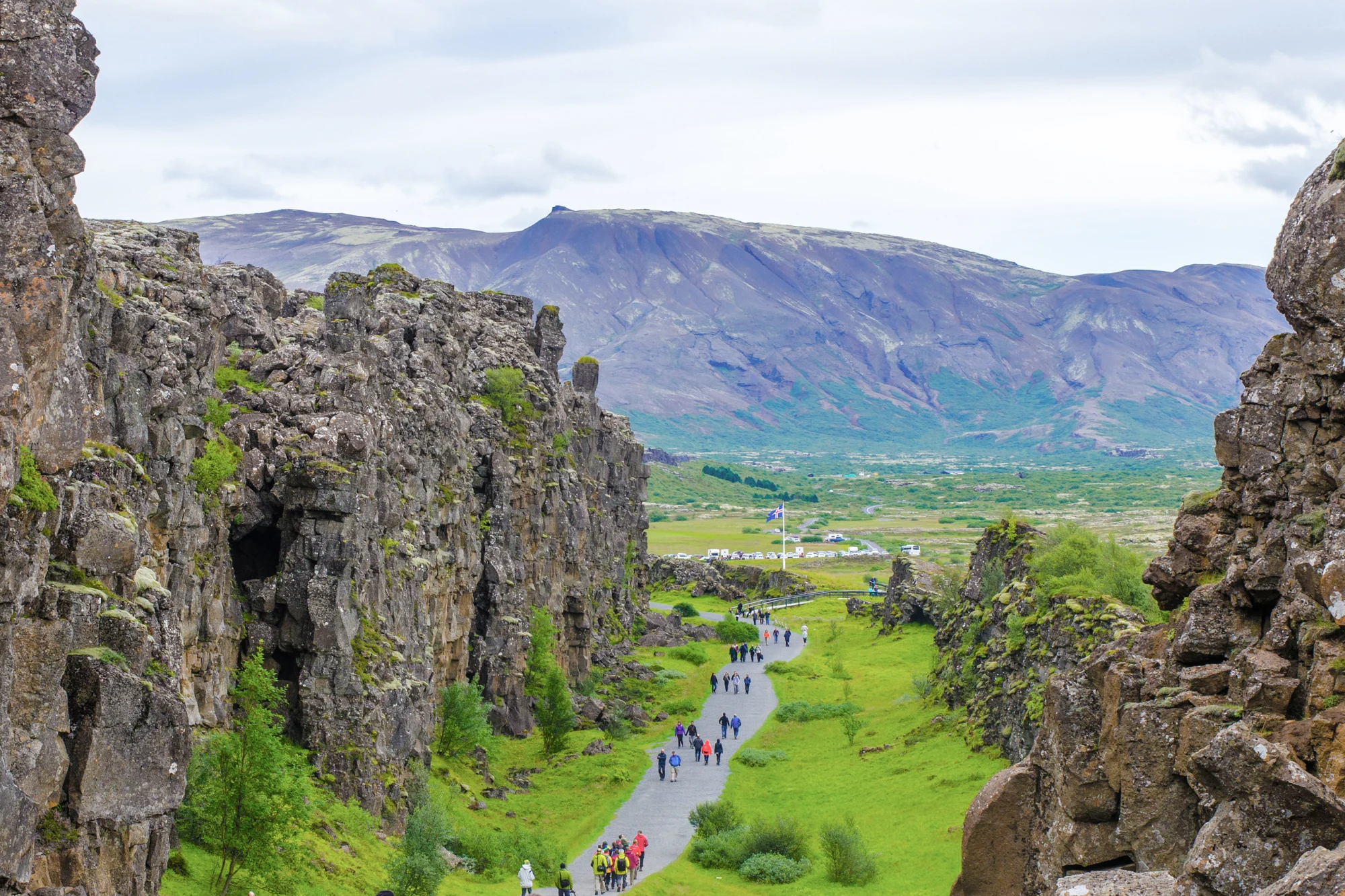 Starten Sie Ihren Tag am Golden Circle mit einem morgendlichen Besuch der Laugaras Lagoon im Geysir-Gebiet (optional buchbar). Weiter geht die Fahrt über die brodelnde Insel zum beeindruckenden Geysir Strokkur, der regelmäßige mächtige Wasserfontänen in die Luft schießen lässt. Ein wahres Highlight auf Ihrer Route ist der spektakuläre „Goldene Wasserfall" Gullfoss, atemberaubend stürzen hier Wassermassen über 32 m in die enge Schlucht hinab. Erhalten Sie packende Einblicke in die Geschichte und die geologischen Wunder Islands im Nationalpark Thingvellir. Dort tagte im Mittelalter einst das isländische Parlament „Althing“ und ebenda driften die eurasische und amerikanische Kontinentalplatte auseinander.