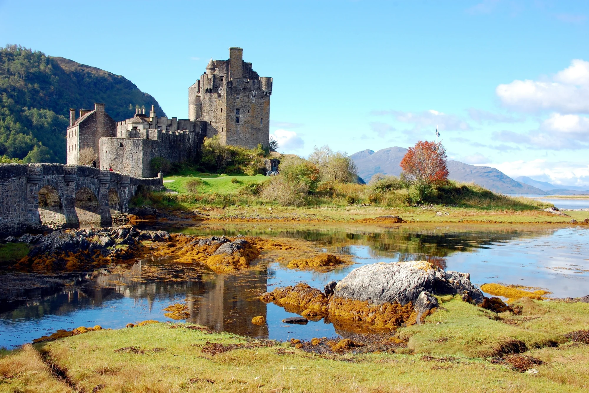 Sie fahren über die Skye Bridge zur sagenumwobenen Isle of Skye. Auf dem Weg dorthin ist ein Halt am berühmten Eilean Donan Castle ein Muss.
