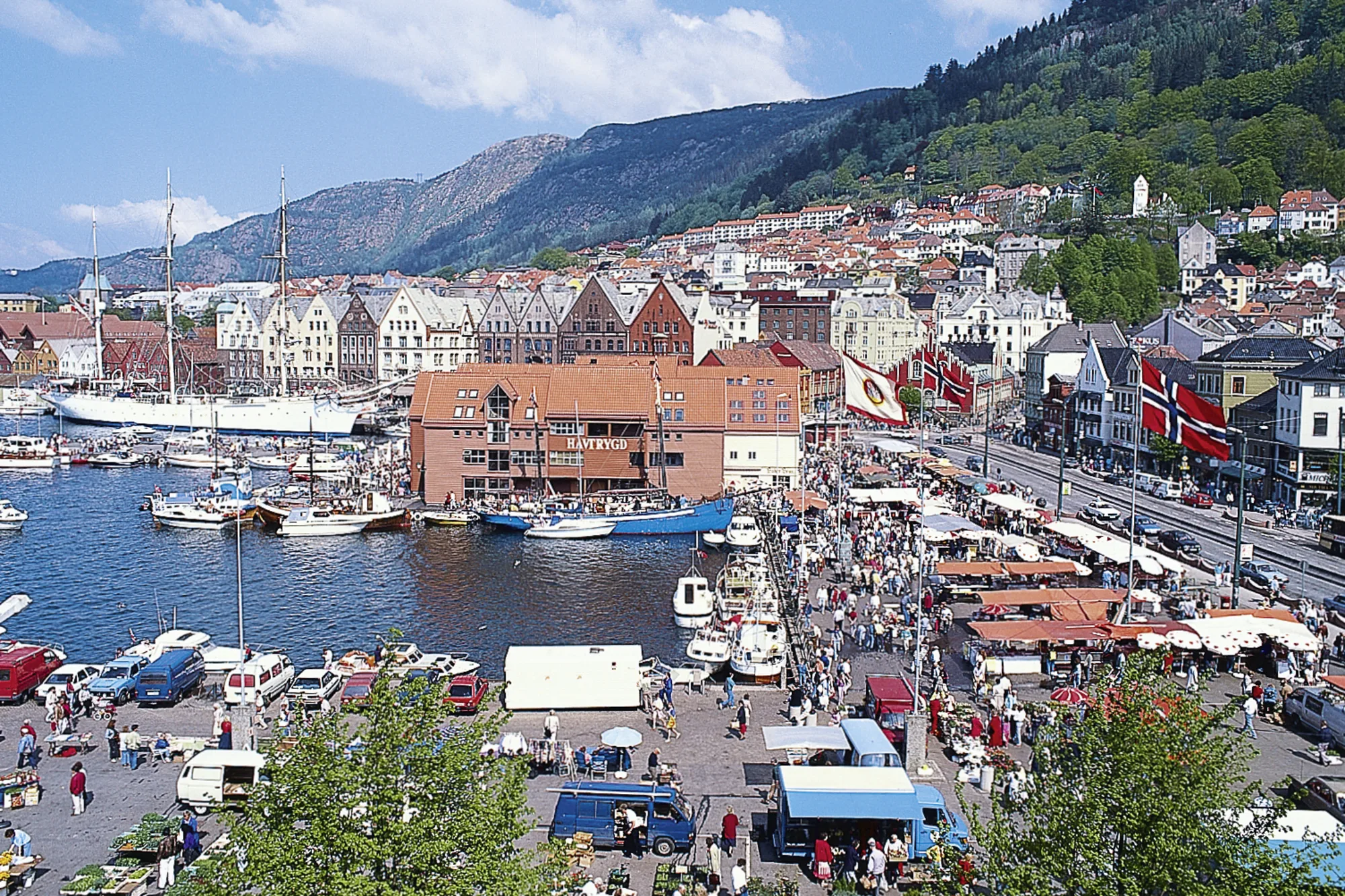 Bergen lädt zum Flanieren ein. Mittelpunkt der Stadt ist der Marktplatz, welcher direkt an der Stirnseite des Hafens Vågen liegt, wo morgens die Fischerboote anlegen. Das Angebot an verschiedenen Meeresfrüchten lässt das Herz eines jeden Fischliebhabers höher schlagen. Das berühmte Hanseviertel Bryggen beherbergt Kulturhäuser, welche heute auf der UNESCO Weltkulturerbeliste zu finden sind. Einen besonders schönen Ausblick auf die gesamte Stadt Bergen haben Sie vom Hausberg Fløyen, dessen Spitze per Seilbahn in 6 Minuten zu erreichen ist (optional buchbar).
