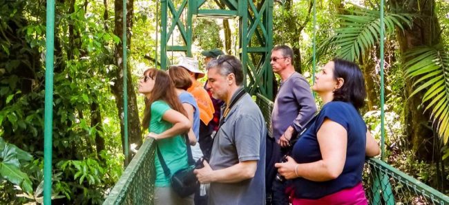 Im Nebelwaldreservat Monteverde herrscht eine Artenvielfalt, dass es kaum zu glauben ist: Über 2.500 Pflanzenarten, 100 Säugetier-, rund 400 Vogel- sowie 10.000 Insektenarten leben hier. Auf einem ca. zweistündigen einfachen Spaziergang über ein Hängebrückensystem spürst du das Leben im Kronendach des Nebelwaldes hautnah. Trotz der Höhe kannst du dich absolut sicher fühlen, denn die Hängebrücken sind so stark gespannt, dass sie kaum schwanken.