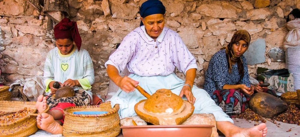 Die Medina mit ihren weiß getünchten Häusern ist ein weiterer Beitrag Marokkos zur Welterbeliste der UNESCO. Bis zur Unabhängigkeit im Jahr 1956 hieß die Stadt noch Mogador, was so viel wie »kleine Festung« bedeutet. Klein erscheint die gewaltige Festungsmauer jedoch ganz und gar nicht. Von der etwa 200 Meter langen und mehrere Meter dicken »Scala de la Kasbah« kannst du einen tollen Ausblick auf den Ozean und die Stadt genießen. Am Fuße der Mauer befinden sich zahlreiche Werkstätten, die bekannt sind für ihre kunstvollen Holzintarsien. Wer etwas Verhandlungsgeschick zeigt, kann hier tolle Unikate zu fairen Preisen erwerben. Durch die, für Marokko einmalige, rechtwinklige Anlage der Medina ist die Altstadt vergleichsweise übersichtlich. Im Zentrum befinden sich die Souks, folgt man der Hauptachse in Richtung Hafen, gelangst du zum zentralen Place Moulay El Hassan. Durch das Bab Marsa kommst du zum sehenswerten Fischereihafen und wer möchte, kann hier einen frisch gegrillten Fisch probieren. Anschließend besuchst du im Örtchen Ghazoua eine Frauenkooperative, die sich der Produktion von Arganöl widmet. Der aufwendige Herstellungsprozess des »weißen Goldes«, also das Ernten, Schälen, Sortieren, Rösten, Mahlen und Pressen der Samenkerne, ist seit jeher Frauensache. Für einen einzigen Liter Arganöl werden etwa 100 Kilogramm Arganfrüchte benötigt. Kein Wunder, dass die Preise für das international gefragte Produkt hoch gehandelt werden. Am späten Nachmittag erreichst du Marrakesch.