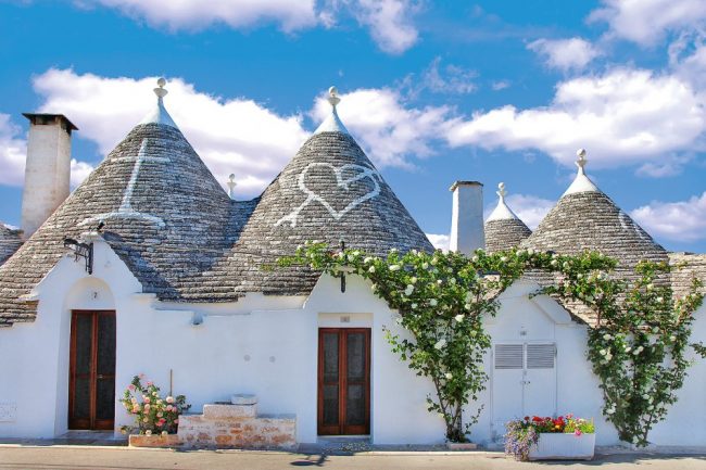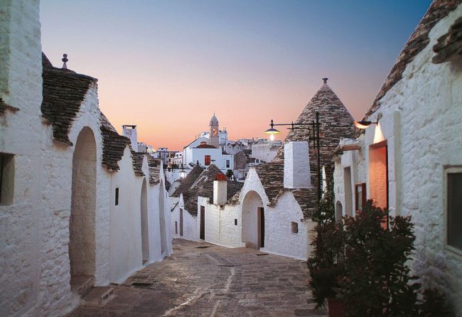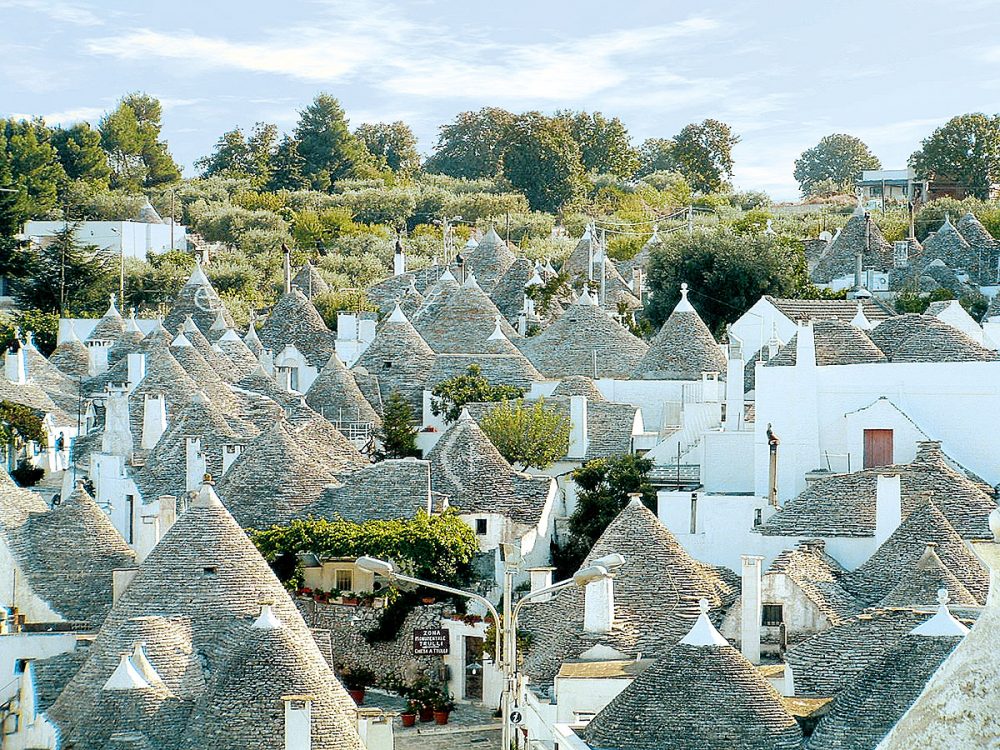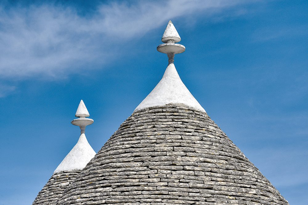 Lediglich ca. 20 km trennen Sie von der „Stadt der Zipfelmützen“, dem UNESCO-geschützten Ort Alberobello mit seinen berühmten Trulli-Rundbauten.