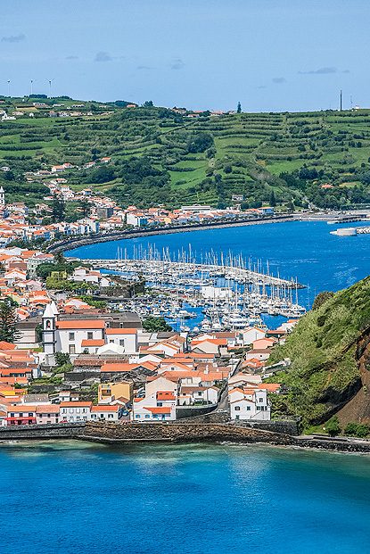 Die zweite Wanderung nahe Serreta im Nordwesten von Terceira bietet, entsprechend gute Wetterverhältnisse vorausgesetzt, schöne Panoramen der Nachbarinseln Graciosa und São Jorge (Schwierigkeitsgrad: mittel). Nachmittags geht es per Inlandsflug weiter auf die Insel Faial, die schon immer ein beliebter Treffpunkt für Weltumsegler und Atlantiküberquerer war. Hier sind Sie für 2 Nächte im 4-Sterne-Hotel Azoris Faial Garden gleich oberhalb des bedeutenden Yachthafens von Horta untergebracht, den Tausende bunter Malereien der Segelcrews zieren.