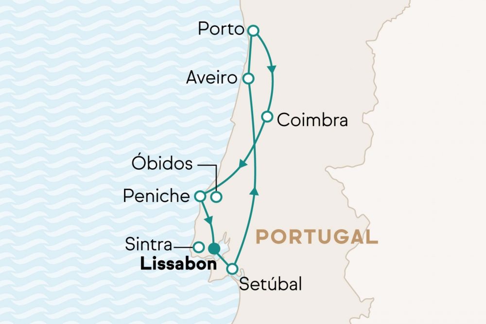 10 Übernachtungen/Frühstück: 2x Meliá Setúbal, Setúbal; 2x Meliá Ria Hotel & Spa, Aveiro; 2x Hotel da Música, Porto; 2x Star Inn Peniche, Peniche; 2x Meliá Lisboa Oriente, Lissabon
