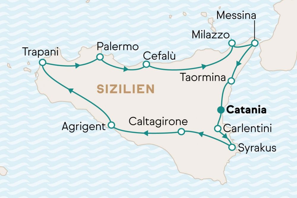 7 Übernachtungen/Frühstück: 1x Agriturismo Badiula, bei Carlentini; 1x Ferro Hotel, Modica; 1x Hotel Baglio della Luna, bei Agrigent; 2x Hotel Plaza Opera, Palermo; 2x Hotel Ariston, Taormina