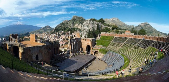 Taormina, das in 200 m Höhe wie ein Balkon über dem Meer liegt, ist der meistbesuchte Ferienort Siziliens und in der ganzen Welt berühmt durch das ganzjährig milde Klima und die atemberaubende Lage auf einer Terrasse des Monte Tauro. Das Highlight in Taormina ist natürlich das Teatro Greco. Das griechisch-römische Theater aus dem 3. Jh. v. Chr. ist nahezu perfekt erhalten und bietet einen einmaligen Blick auf den Ätna - schon Goethe pries die antike Bühne als „das schönste Theater der Welt“. Sehenswert sind der Dom (Piazza Duomo) mit einem interessanten Stilgemisch aus verschiedenen Jahrhunderten oder der spätgotische Palazzo Corvaia (Corso Umberto). Der Aufenthalt in Taormina kann gut mit einer Fahrt zum Ätna verbunden werden, was ohne Zweifel ein Höhepunkt jeder Sizilienreise darstellt.