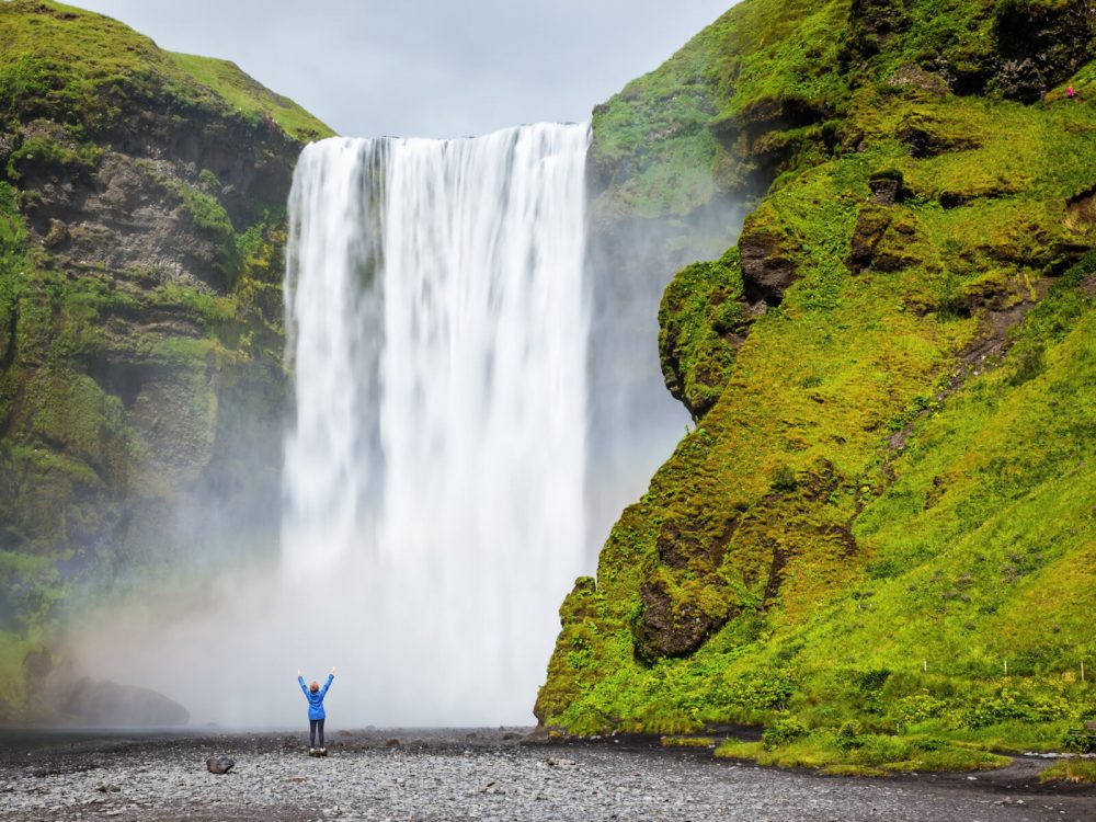 - Der Skógafoss ist nicht weniger als 60 Meter hoch und bei gutem Wetter kann man oft einen doppelten Regenbogen sehen.