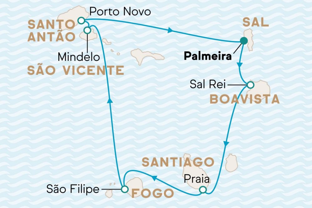 Nach dem Frühstück Ausschiffung um 9:00 Uhr im Hafen Palmeira auf Sal. Fahrt zum Flughafen und Rückreise oder individueller Verlängerungsaufenthalt.