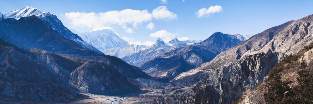 Nach dem Mittagessen wandern Sie auf sanft hügeligem Weg weiter durch den Rhododendronwald. Nach etwa 1,5 Std. Wanderung entlang der Gratlinie erreichen Sie eine Lichtung, von der aus Sie den Blick auf den Annapurna Süd und das weit unten liegende Dorf Ghorepani (2.880 m) genießen können. Nach einem halbstündigen Abstieg nähern Sie sich dem Haupttor des Dorfes, das mit einem großen Schild die Trekker willkommen heißt.