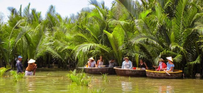 In Jeeps erkundest du heute die einzigartige Schönheit der Insel Cam Kim. Nachdem du den Fluss Thu Bon überquert hast, hältst du unterwegs bei einigen freundlichen Familien vor Ort und lernst wie traditionell Matten hergestellt werden, Landwirtschaft betrieben wird und du besichtigst ein altes Haus. Auf dem Weg in Richtung Küste halten wir noch einmal bei einem lokalen Markt. Das Mangrovengebiet aus Wasserkokosnusspalmen in Cam Thanh ist unser nächstes Ziel. Um der Schrumpfung dieses wunderschönen Biotops entgegenzuwirken, haben Chamäleon-Gäste über viele Jahre Bäume gepflanzt. Mittlerweile ist das Projekt erfolgreich abgeschlossen und eine beachtliche Fläche Mangroven konnte aufgeforstet werden. Freue dich auf die Fahrt in einem für die Gegend typischen Bambusboot durch die Mangroven - ein einzigartiges Erlebnis! Nach dem Mittagessen steht dir der Rest des Tages für eigene Unternehmungen zur freien Verfügung. Entspanne am Strand, mach einen individuellen Stadtrundgang oder genieße die Annehmlichkeiten der Unterkunft.