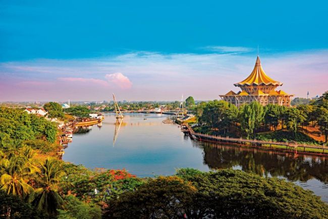 Nach dem Frühstück wohnen Sie einer interessanten Demonstration mit dem Blasrohr bei. Danach geht die Fahrt mit einem einbaumähnlichen Boot auf dem teilweise von Dschungel überwachsenen Fluss und von dort aus nach Kuching. Das Mittagessen nehmen Sie unterwegs ein. Eine Nacht im Hotel Grand Margarita Kuching (gehobene Mittelklasse, Landeskategorie: 5 Sterne). Ca. 322 km (Frühstück, Mittagessen)