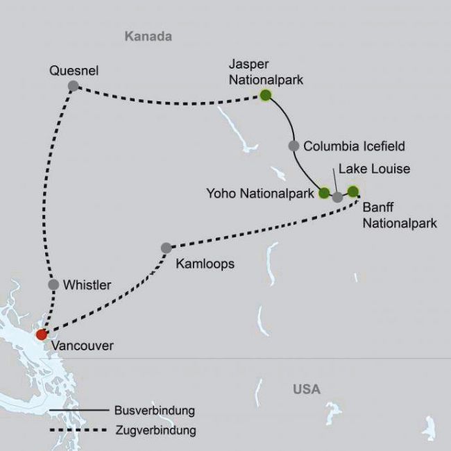 Leistung YVR12047B (Vancouver - Jasper/Jasper - Vancouver via Whistler & Quesnel)