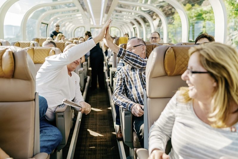 : Doppelstöckige Großraum-Panoramawagen mit Glaskuppeldach und bequemen, verstellbaren Sitzen. Jeder Wagon ist mit einer überdachten Aussichtsplattform ausgestattet (UB3X/UB4X).