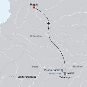 Authentische Dörfer und eine artenreiche Tier- und Pflanzenwelt am Amazonas im Dreiländereck Kolumbien, Brasilien, Peru erwarten Sie während dieser spannenden und kurzen Erlebnisreise.