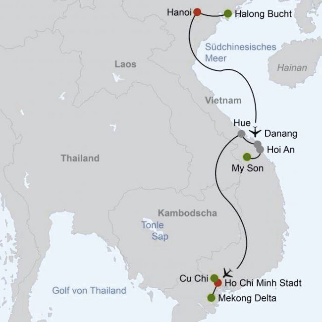 Hanoi, Halong Bucht, Hue, Quy Nhon, Hoi An, Ho Chi Minh Stadt, Mekong Delta
