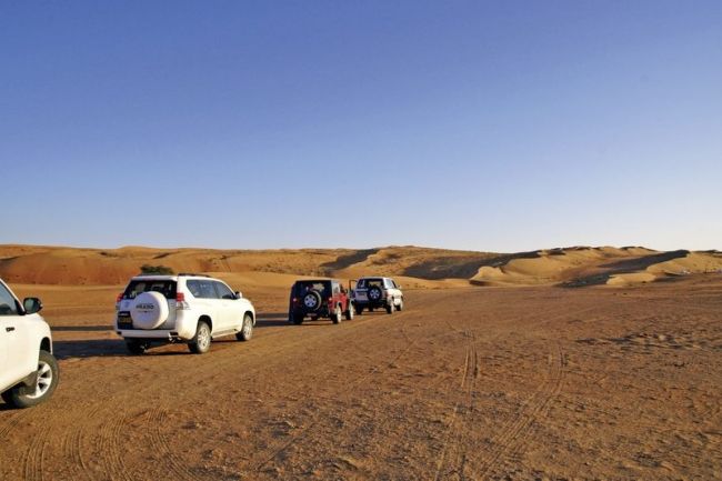 Nach einer „wilden“ Fahrt über die beeindruckenden Dünen der Wahiba Sands fahren Sie zur weißen Seefahrerstadt Sur. Noch heute werden hier in einer kleiner Werft die traditionellen Holzboote, die Dhows, gefertigt und man kann den Arbeitern zuschauen. Weiter geht es an der schönen Küste entlang, wo sich an Stop an Fins Beach zum Schwimmen empfiehlt. Die Strecke führt Sie weiter zum Bimah Sinkhole, einem eindrucksvollen Kalksteinkrater, in dem man baden kann. Über Wadi Arbaeen, mit schönen Naturpools unter Dattelpalmen, gelangen Sie nach Muscat. Ende der Reise am Flughafen oder ihrem separat gebuchten Verlängerungshotel in Muscat. Ca. 450 km (Frühstück)