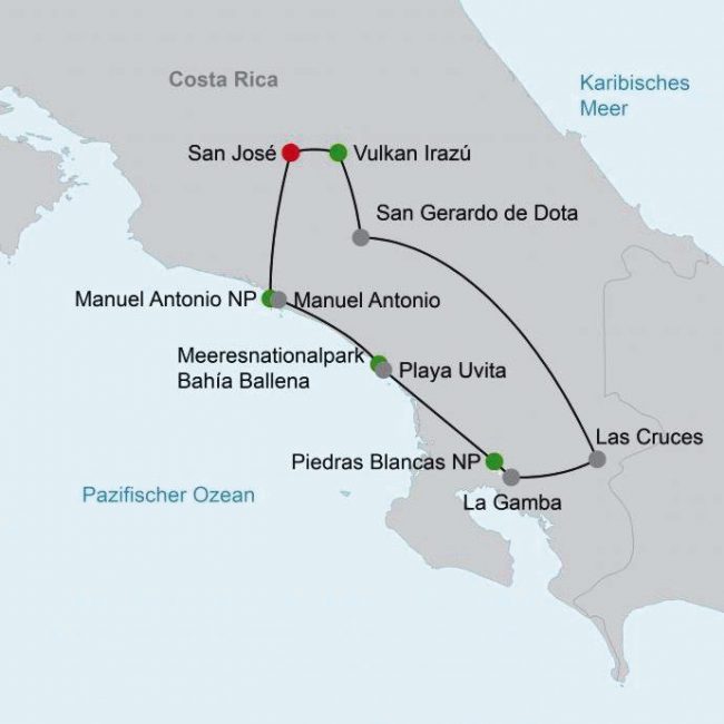 San José, San Gerado de Dota, La Gamba, Uvita, Manuel Antonio