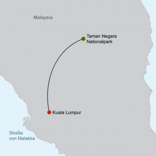 Auch buchbar als ausführlichere Variante (4 Tage/3 Nächte) ab/bis Kuala Lumpur. Der Reiseverlauf entspricht der Beschreibung mit einen zusätzlichen Tag, am 3. Tag mit einer Bootsfahrt nach Kuala Trenggan, Besuch eines Einheimischendorfes (Orang Asli) und Verpflegung. Anf R, Leistung KUL00550B (UG1X).